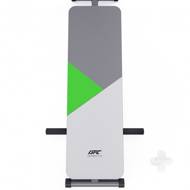 Скамья для пресса DFC DB127/2 с зеленым рисунком – надежный тренажер для домашних тренировок! Эта скамья спортивная сочетает в себе прочность, функциональность и удобство. Стальная рама из профиля 38 х 38 х 1,2 мм гарантирует прочность и устойчивость даже при интенсивных нагрузках. Максимальный вес пользователя составляет 120 кг, что делает скамью подходящей для большинства пользователей. 5 уровней регулировки угла наклона скамьи для жима позволяют менять нагрузку и эффективно прорабатывать разные группы мышц. Вы можете выполнять подъемы корпуса для прокачки пресса, подъемы ног для нижнего отдела живота, а также использовать скамью для упражнений с гантелями. Эргономичные регулируемые валики из вспененного материала обеспечивают комфорт во время тренировки. Нижние валики регулируются на 4 уровня, что позволяет надежно фиксировать стопы. Дополнительные удобства включают стойку для отжиманий и упоры, расширяющие спектр упражнений. Кор-доска отличается устойчивостью благодаря прорезиненным ножкам, которые защищают пол от царапин и предотвращают скольжение. Обивка выполнена из водонепроницаемой экокожи, что облегчает уход за тренажером.